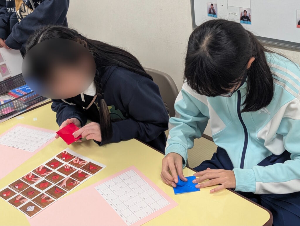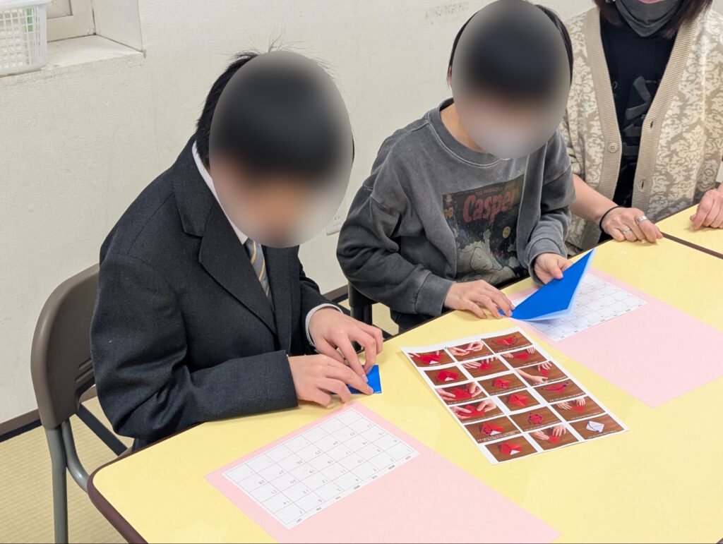 2月のイベントといえば、まず節分!お友達は折り紙で、鬼を作っていきます。