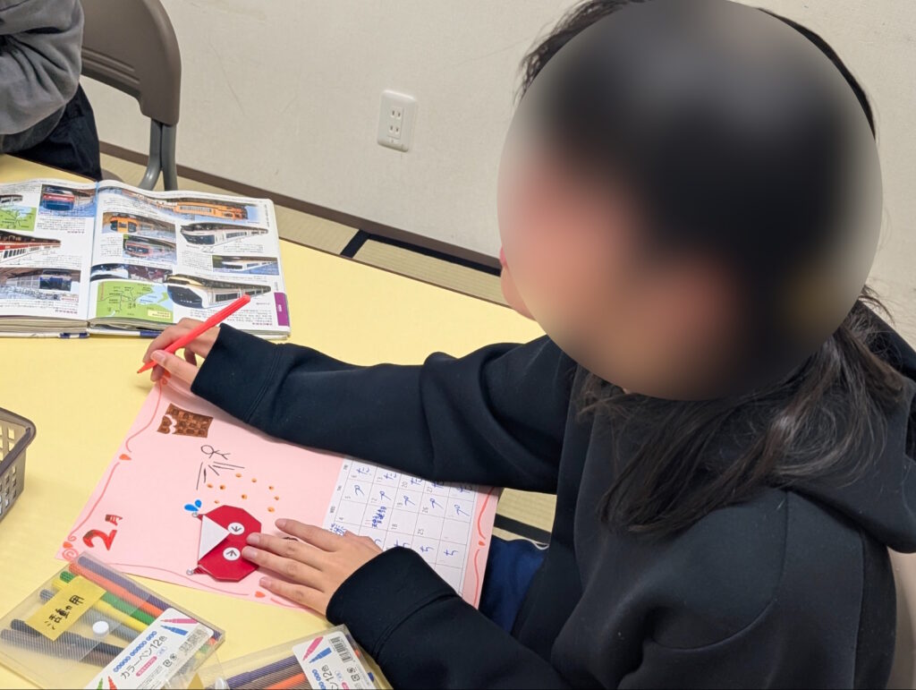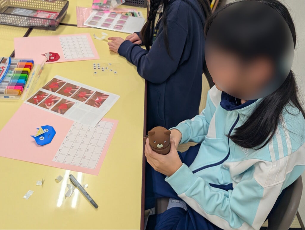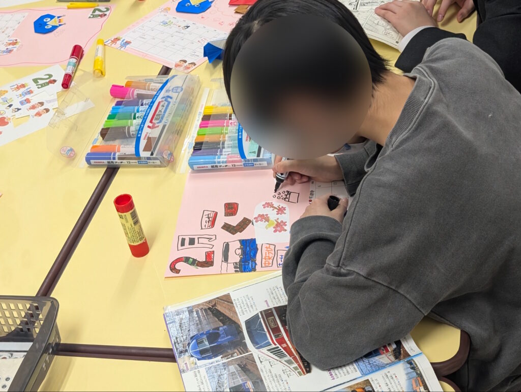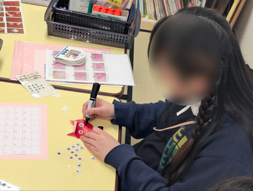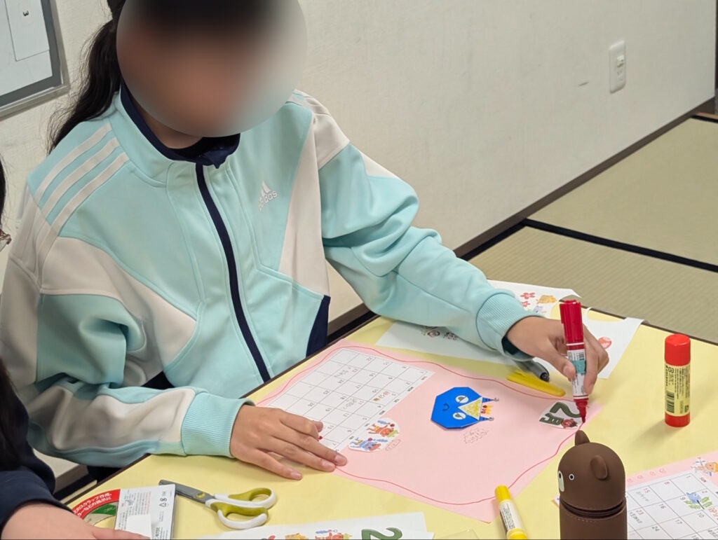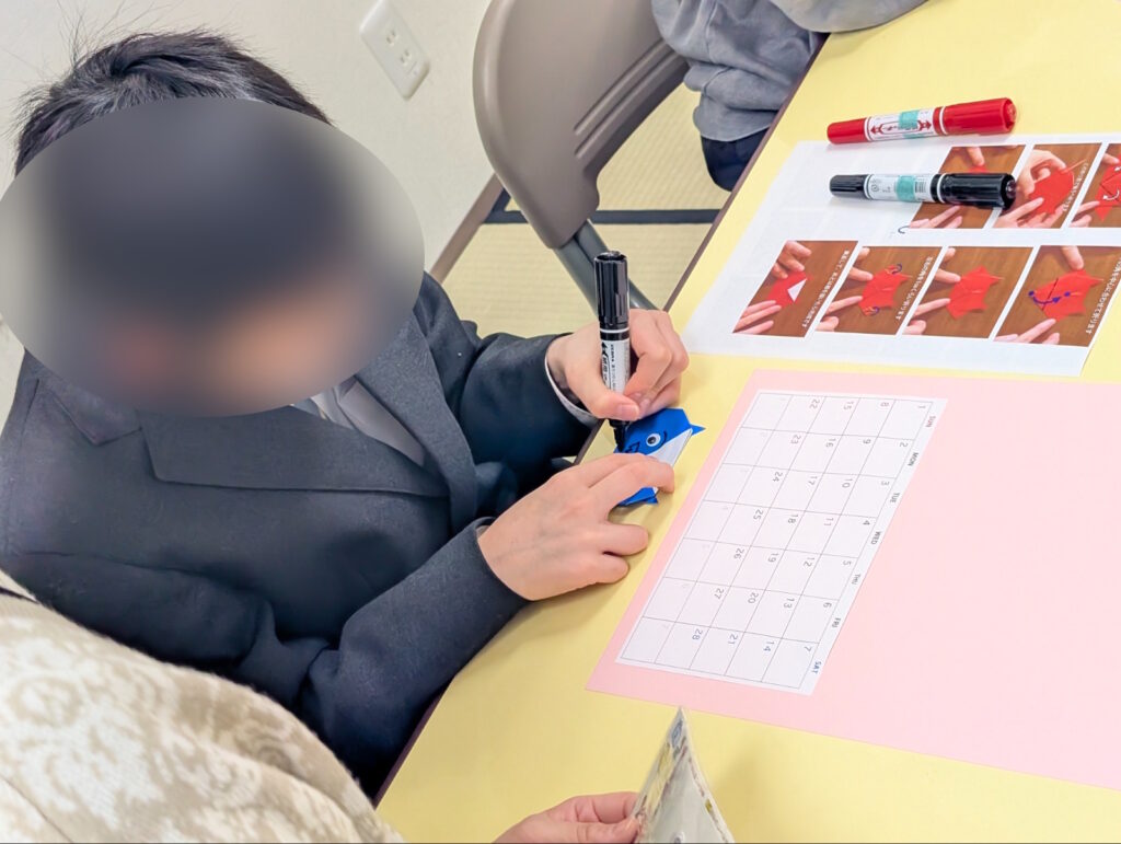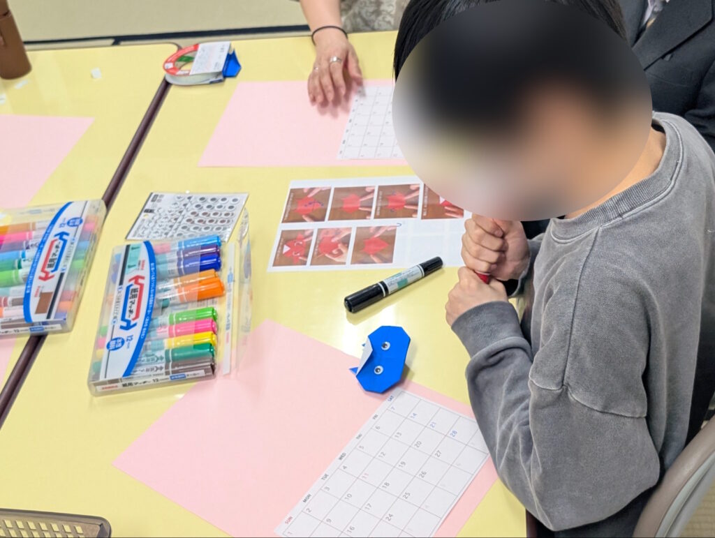 鬼が完成したら、シールを貼ったり絵を描いたりしていきます。お友達はそれぞれアイディアを膨らませ、自分だけのカレンダーを作ります。